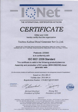 泰州市凱華柴油發(fā)電機(jī)組有限公司創(chuàng)建于2003年,是一家集柴油發(fā)電機(jī)組燃?xì)獍l(fā)電機(jī)組的研發(fā)、生產(chǎn)、銷售為一體的高新技術(shù)民營(yíng)企業(yè),公司座落于“漢唐古郡,淮海名區(qū)”,具有“鳳凰城”美稱的祥泰之州——江蘇省泰州市,地處中國(guó)經(jīng)濟(jì)最發(fā)達(dá)的長(zhǎng)三角經(jīng)濟(jì)圈,水陸空立體交通,地理位置十分優(yōu)越。公司目前注冊(cè)資本金11800萬(wàn)元人民幣,生產(chǎn)基地占地六十畝,現(xiàn)有各類高素質(zhì)員工一百多名,專業(yè)技術(shù)人員達(dá)46人,其中高級(jí)技術(shù)人員16人,年銷售額近6億元。 公司主營(yíng)產(chǎn)品:3~3000KW陸用柴油發(fā)電機(jī)組,15~600KW移動(dòng)拖車電站,12~1000KW船用應(yīng)急柴油發(fā)電機(jī)組,各種靜音型、中高壓、多機(jī)并聯(lián)、燃?xì)獾忍胤N機(jī)組以及進(jìn)口系列柴油發(fā)電機(jī)組,可滿足不同客戶的一切電力需求,還可滿足用戶不同電壓、不同頻率的要求。凱華公司是康明斯品牌的授權(quán)代理商,專業(yè)生產(chǎn)供應(yīng)康明斯柴油發(fā)電機(jī)組。